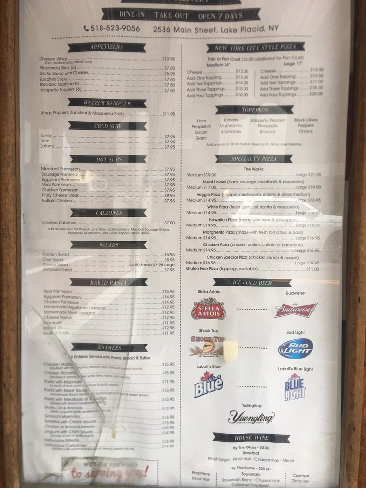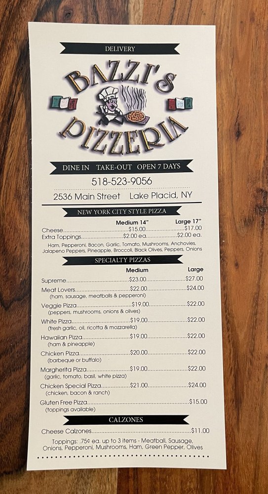 Introducing Bazzi's Pizza, a local gem situated at 2536 Main St in Lake Placid, NY. Renowned for its New York-style, thin-crust pizza, this casual dining spot has quickly become a favorite among locals and visitors alike.