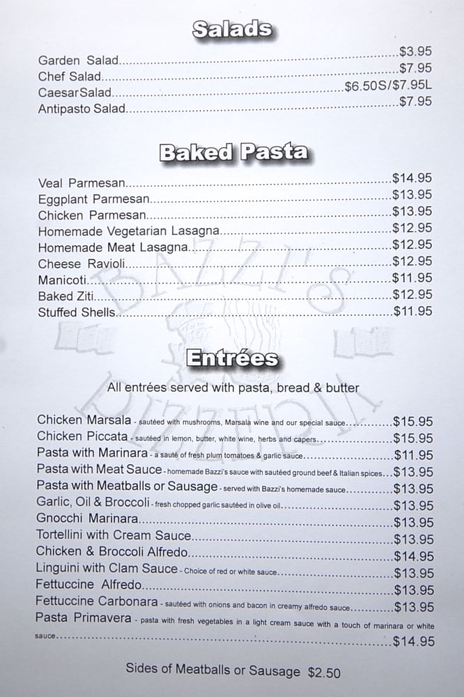 Served with homemade Bazzi's sauce. All entrees served with pasta, bread and butter.