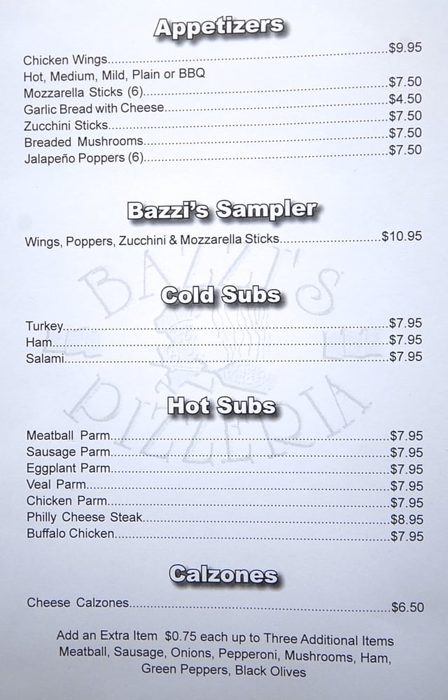 With a focus on quality and flavor, customer reviews highlight the standout meatballs and chicken Parmesan that are rich in taste. Not only does Bazzi's offer quick and friendly service, but it also provides a lively atmosphere suited for families and groups. Whether you're popping in for a late-night slice or a quick lunch, Bazzi's Pizza truly delivers a satisfying dining experience.